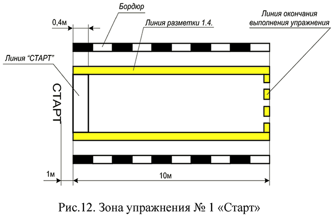 Перед началом выполнения упражнения автопоезд должен находиться у одной из линий "СТАРТ-ФИНИШ", расположенных в зоне выполнения испытательных упражнений.