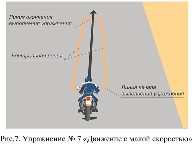 При выполнении упражнения кандидат в водители должен осуществить движение передним ходом в "габаритном коридоре", не наезжая колесом на контрольные линии. При несоблюдении условий выполнения упражнения начисляются штрафные баллы в соответствии с контрольной таблицей N 5.
