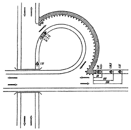 3.37. Переходные участки от основных полос движения к объездным путям следует выполнять с учетом скоростей транспортных средств на основной дороге.